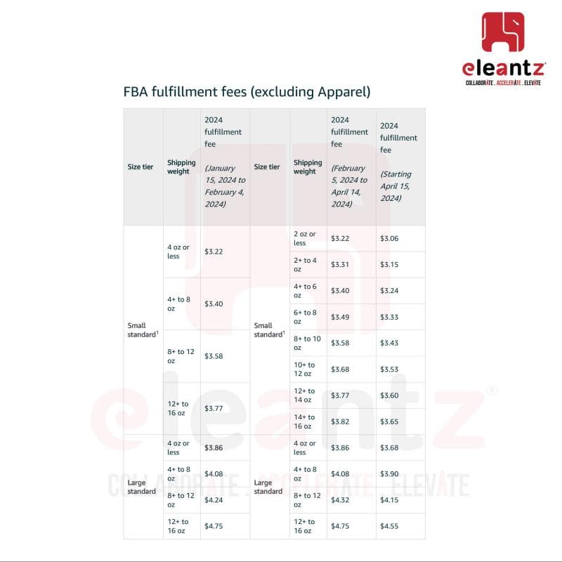 From Apr 15, 2024, enjoy reduced FBA fulfillment fees on standard & large bulky items. Check out the charts below for updated rates!